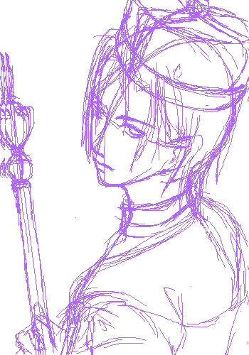 石膏像みたいだった鼻修正。髪のはみ出し部分極力修正。マントの立体を何となく起こしていってます。