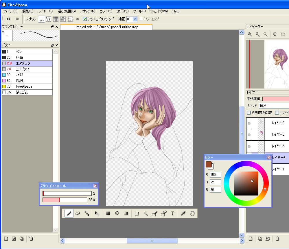 SAIを試してみて一番良かったのが線の補正なのですが、アルパカさんにもちゃんと盛り込まれていました。