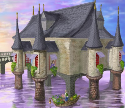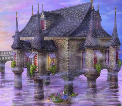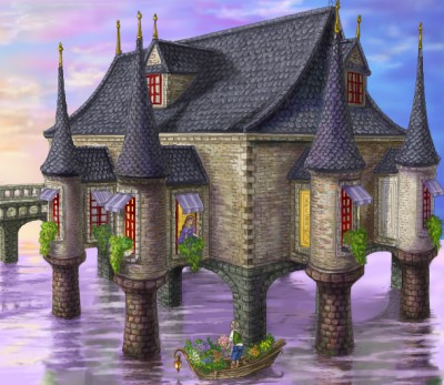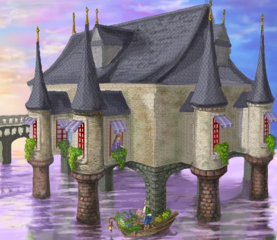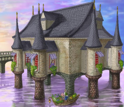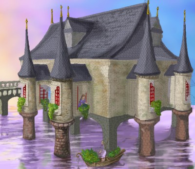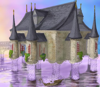 家屋側のレンガと屋根、塔の影等を塗っています。レンガって境目に影を落とすのと、白ぽい色でハイライトを描くのを混ぜた方がクドくならなくて良いようでした。